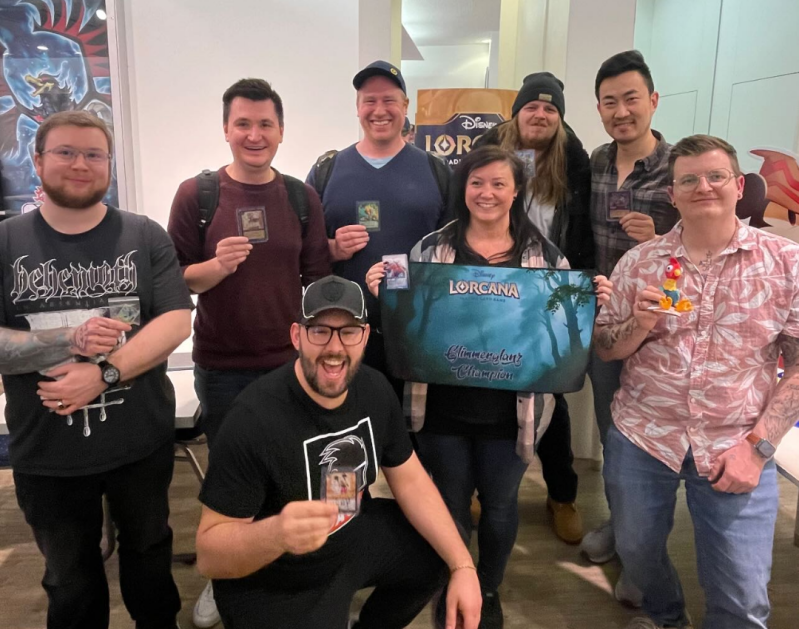 Es folgte noch eine Runde gegen Rot-Blau, die ich gewinnen konnte, wobei man sagen musste, dass mein Gegner auch etwa gebrickt hat und daher das Ganze Match ein Uphill Battle spielen musste. Bevor ich anschließend gegen die bis dahin ungeschlagene Jezz spielen durfte. Nochmal Blau-Stahl zum Abschluss. Diesmal mit der etwas controllastigeren Liste mit Tinkerbell usw. Glücklicherweise war ich in den vorigen Runden immer relativ früh fertig, sodass ich schon eine ungefähre Idee hatte was mich erwartet. Ich musste schnell sein, das Late Game würde ich verlieren. Und auch hier zeigte sich die Vielseitigkeit meines Lila-Stahl Ansatzes, sodass ich mit der geballten Power der wendigen 2 Lore Quester Dschinni und Tinkerbell gemeinsam mit der ultrastarken neuen Karte Riesenkobra ein 2:0 einheimsen konnte. 6-1 und eine Spielstatistik von 12:3 kann sich wirklich sehen lassen. Am Ende war's eine Tiebreaker Entscheidung, da Jezz und ich gemeinsam mit Mo ein Trio mit einem Standing von 6-1 bildeten, wobei Jezz sich für ein starkes Turnier belohnen konnte und verdient den Titel 1. Glimmerglanz Champion trägt!